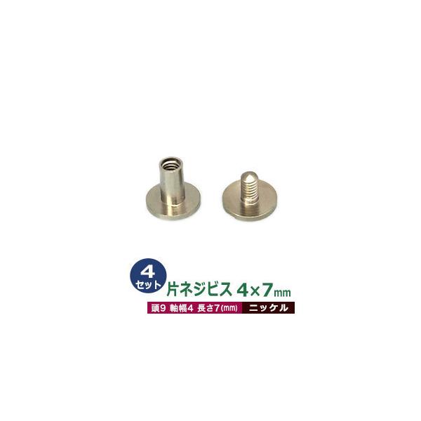 片ネジ式ビス4X7mm ニッケル 頭9mm 太さ4mm 長さ7mm 真鍮製 4セット入
