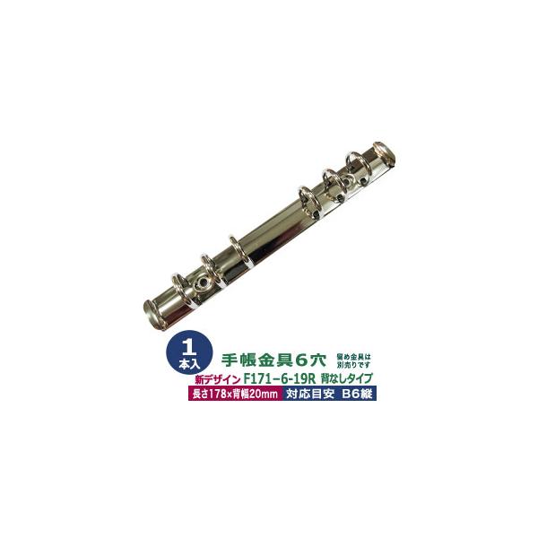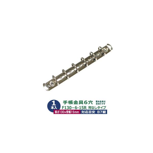 バインダー金具 F130-6-15R シルバー 1本入 長さ133mm ×背幅15mm 背なし(取付金具別途必要)タイプ 6穴 鉄製 B7縦 ミニ6穴 ポケットサイズ リフィル対応 B7