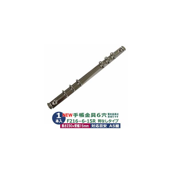 バインダー金具 F216-6-15R 1本入 長さ 230mm 背幅 15mm リング 内径 15mm 背なしタイプ 6穴 シルバー ニッケルメッキ 鉄A5縦 A5サイズリ フィル対応 a5