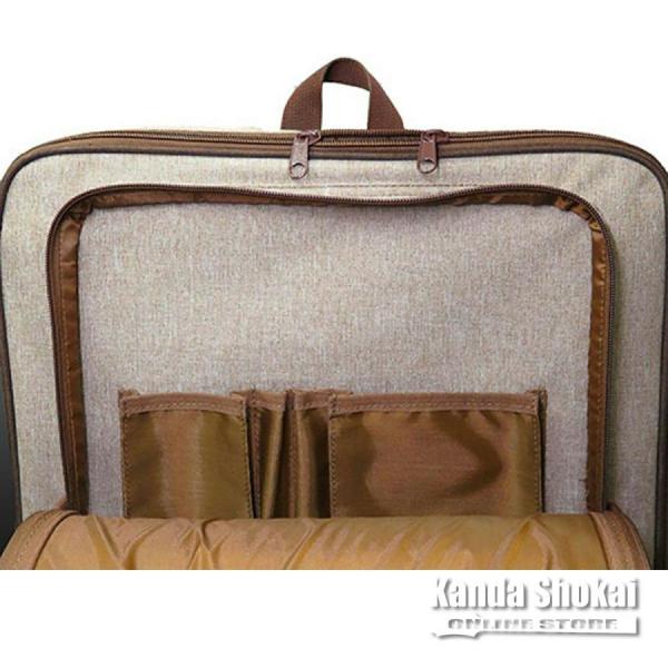 表側には余裕でA4サイズ(縦位置)が入る大きなポケットがあり、スコア、シールド・ケーブル、ストラップ、弦やチューナーなど必要なアクセサリー類も収納できます。