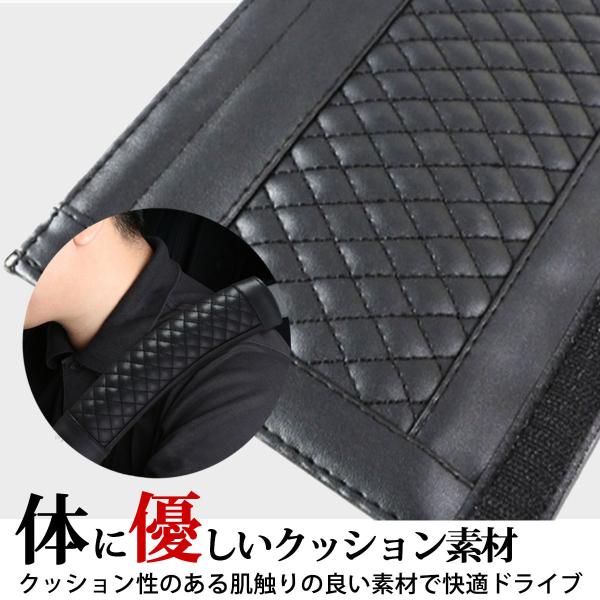不快なシートベルトとの接触面を優しくしクッションとしての役割も果たしてくれます。