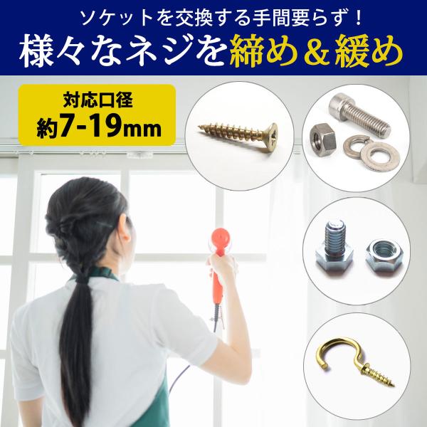 ソケットを替えずに作業ができるので効率アップに繋がりますね♪