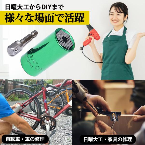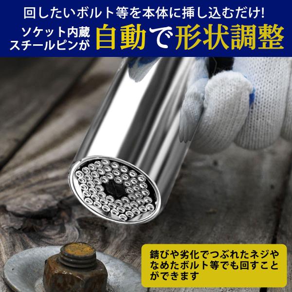 相手の形状に合わせて変化し簡単に締めたり緩めたりできる万能変化ソケットです。