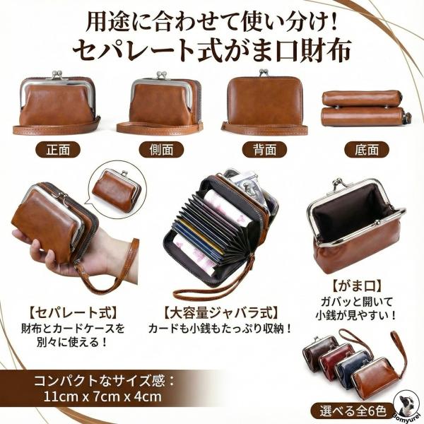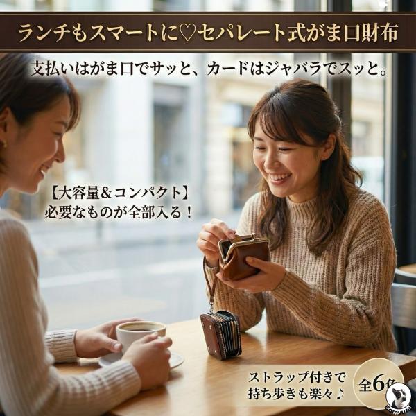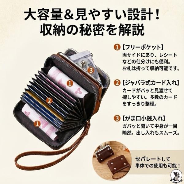 がま口財布 小銭入れ カードも入る 蛇腹 セパレート じゃばら リストストラップ コインケース カード入れ ウォレット レディース 女性 PUレザー