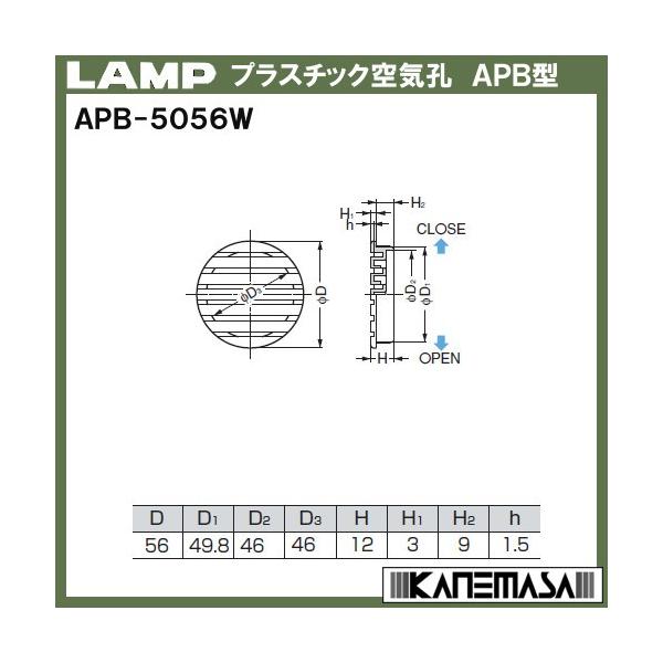 プラスチック空気孔 打込み LAMP スガツネ APB-5056W ホワイト「スガツネ製品ならカネマサ」