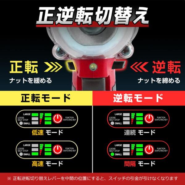 正回転(締める時)状態で機能スイッチを押すと、2段階でトルクパワーの調整をすることができます。