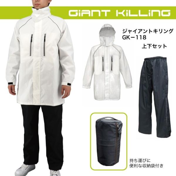 レインウェア カッパ 自転車 上下 通学用 リュック対応 学校指定 レインスーツ メンズ レディース 回転フード 視界良好 ジャイアントキリングスーツ GK-118α