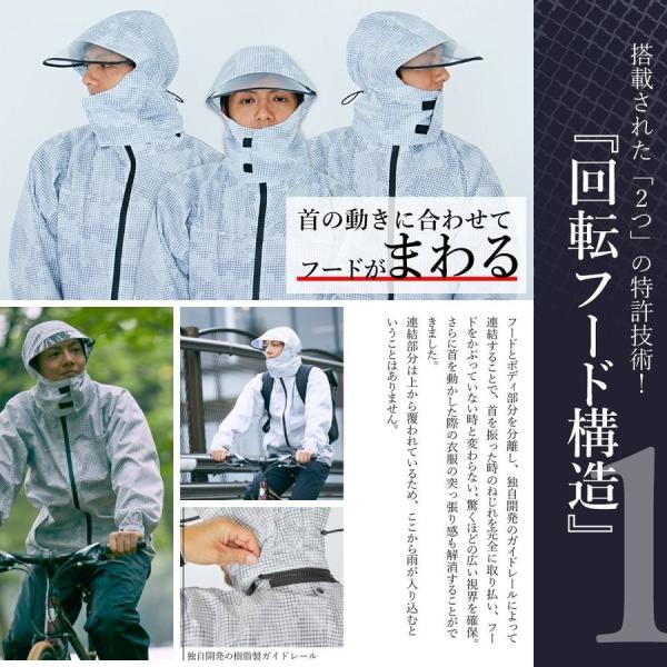 回転式フードで視界良好レインウエア