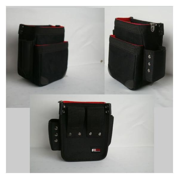 関西の鳶さん達に意見を聞いて作られた、まさに関西鳶使用の工具・腰袋フエイス面は高級感あるスエード生地を使用しサイドとバック面には頑丈な1680デニールポリエステルを仕様、サイド部分にマーカー差しや、水平器フォルダーを付けるなど実用性を重視した腰袋
