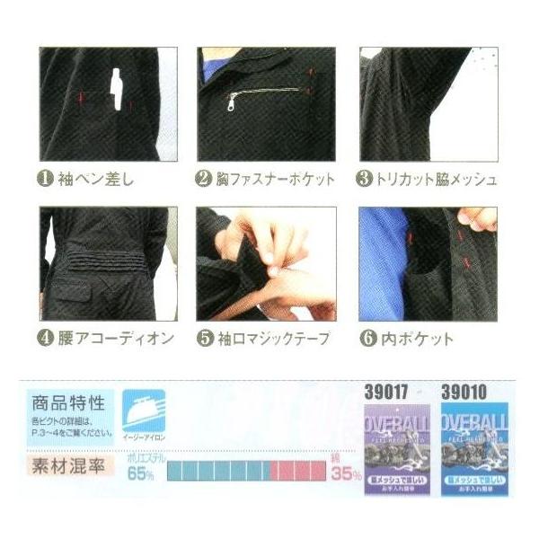 夏用長袖サマーツナギ S〜3L #39010 脇メッシュ
