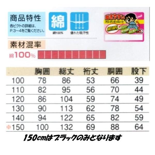 カラフルおしゃれツナギ100cm〜150cm#9009 綿100%