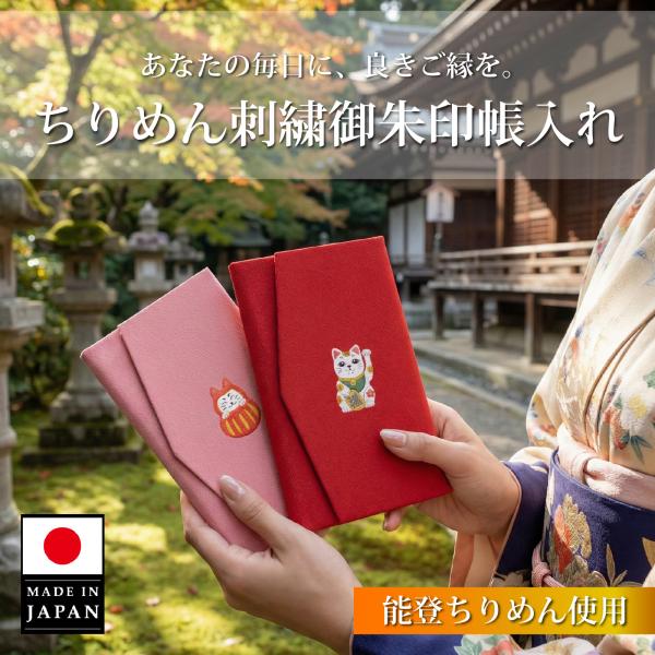 【日本製】御朱印帳入れ 御朱印帳 ポーチ ケース 2冊収納 大判 刺繍 招き猫 猫だるま 能登ちりめん おしゃれ かわいい 金運 動物 袱紗 ふくさ ギフト 送料無料