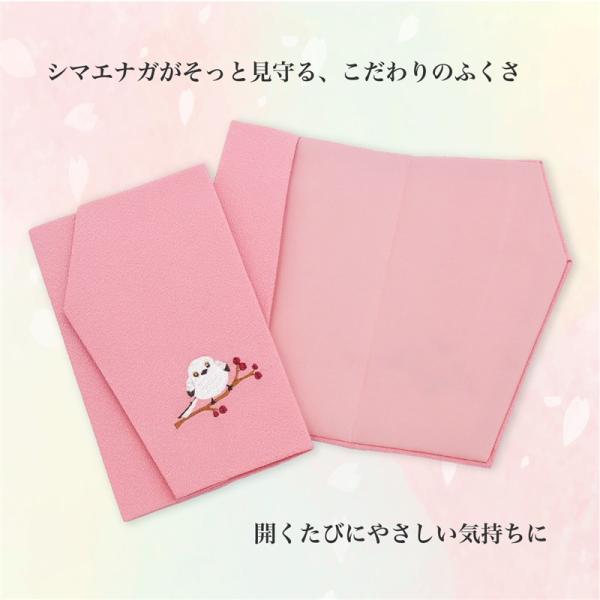 袱紗 ふくさ シマエナガ 結婚式 慶事用(能登ちりめん 刺繍)お祝い 長寿祝い 自社製造 日本製 薄桃