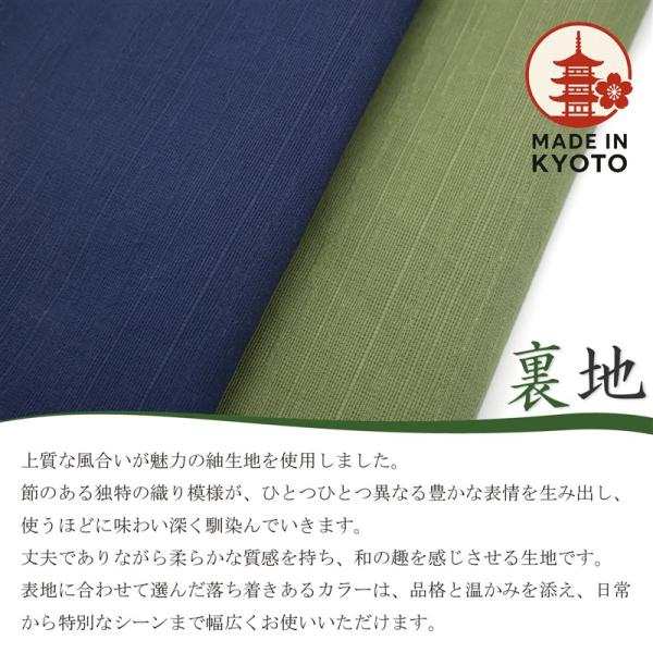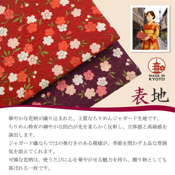 華やかな花柄のちりめんジャガード生地と、上品な風合いの紬生地をリバーシブルで仕立てた、日本製の金封袱紗(ふくさ)です。慶事には明るく華やかな柄面を、弔事には落ち着いた無地面を使い分けられる、実用性と美しさを兼ね備えた一枚。中の台紙もリバーシブル仕様で、当店独自の技術により実用新案としても登録済み。ポケットをひっくり返すだけで簡単に切り替えができ、急なお呼ばれやフォーマルシーンにも安心して対応できます。京都の工房で丁寧に縫製された品格ある仕上がりは、贈り物やご自身用としてもおすすめ。一般的なご祝儀袋がしっかり収まるサイズで、結婚式・法事・お祝い・お悔やみなど、冠婚葬祭のあらゆる場面に幅広く対応します。えんじ×紺、紫×緑の2色展開。日本の伝統と実用性を融合させた、当店ならではの逸品です。