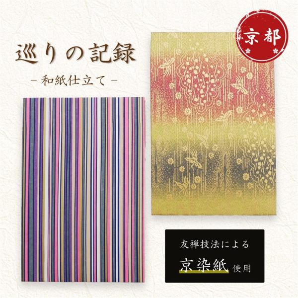 【日本製】御朱印帳 京都西陣織 金襴 8種 ケース付き かわいい 鶴ゴム留め おしゃれ 和柄 カバー ポーチ 二重奉書紙 蛇腹式 ご朱印帳