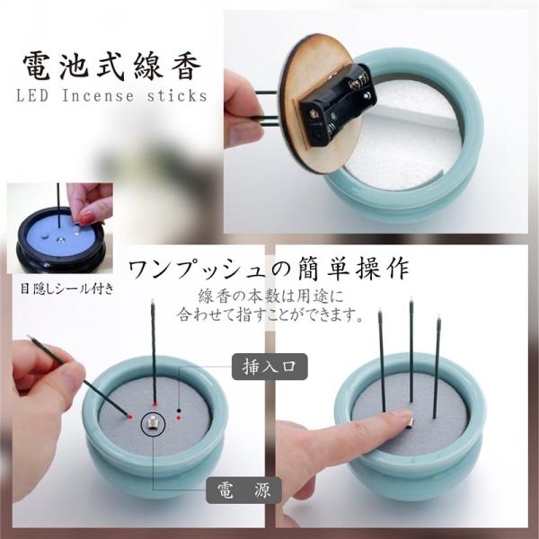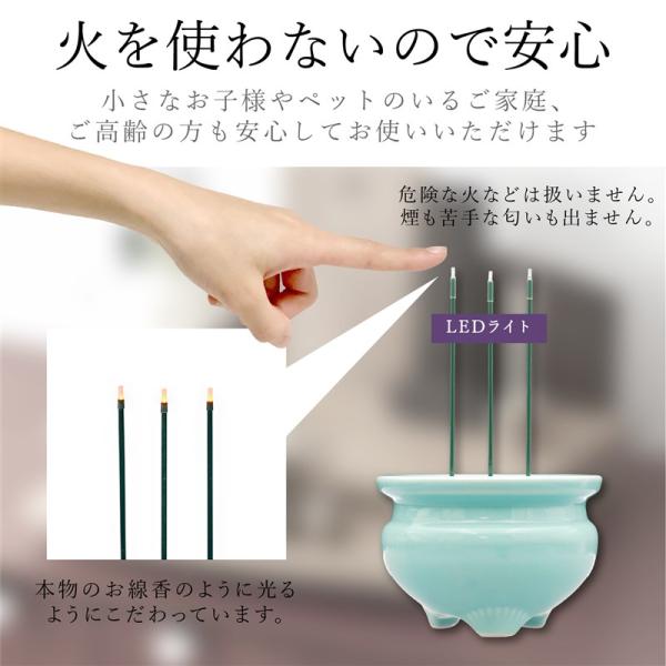 線香 電子線香 LED 電池式 日本製 陶器 香炉 3本立 Lサイズ 火を使わない線香 仏具 仏壇 ペット 供養 安全 お彼岸 お盆 初盆