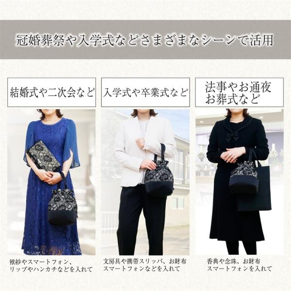 フォーマルバッグ 巾着トート 2WAY ショルダー付き 黒 日本製 京都 弔事 慶事 入学式 卒業式 結婚式 お葬式 法事 和装 洋装 レディース 軽量バッグ