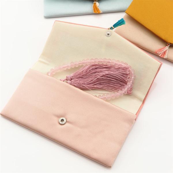 ミニタッセル念珠入れ 数珠 タッセル ピンク ブルー ベージュ おしゃれ かわいい 収納 ギフト プレゼント 薄型 マルチケース カード 男女両用 ユニセックス