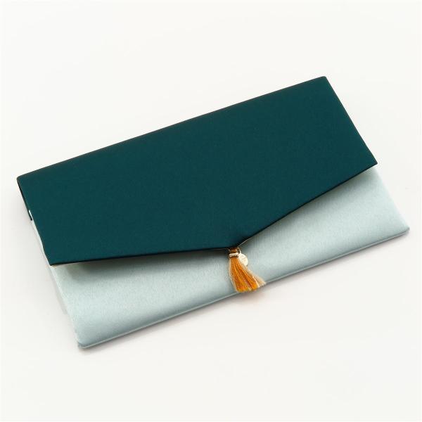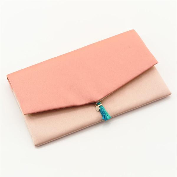 バイカラーのサテンに小さなタッセルがポイント。 ミニタッセル念珠入れ 数珠 タッセル ピンク ブルー ベージュ おしゃれ かわいい 収納 ギフト プレゼント 薄型 マルチケース カード 男女両用 ユニセックス コーラルピンク フォレストブルー ゴールドベージュ