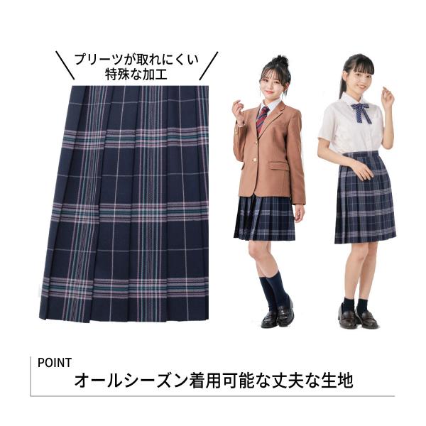 制服 スカート スクールスカート プリーツスカート チェック 大きいサイズ 日本製 ネイビー グリーン ピンク エンジ アイボリー 学生 通学 中学生 高校生 入学式 卒業式 面接 なんちゃって制服 カンコー KHS205
