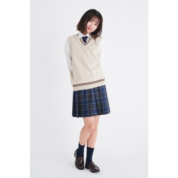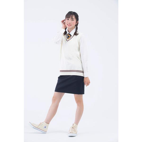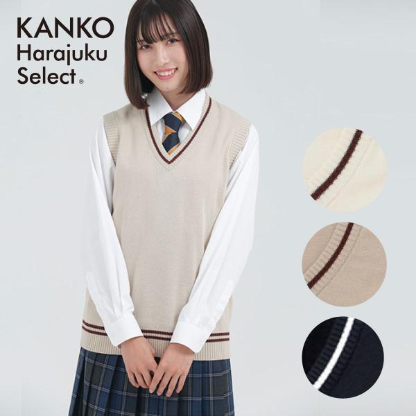 スクールベスト 制服 ベスト ライン 入り 秋 女子 スクールニット vネック 白 紺 ベージュ 綿 コットン 韓国 ニットベスト レディース カンコー KHS406