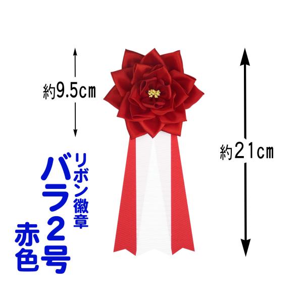 バラ2号 バラ徽章 赤・白・ピンク・黄・水・緑・紫・黒の8色ラインナップ【リボン徽章・胸章】