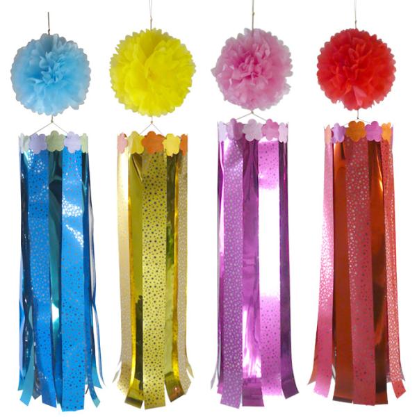 不織布製の花飾り&メッキ吹流しの七夕飾り