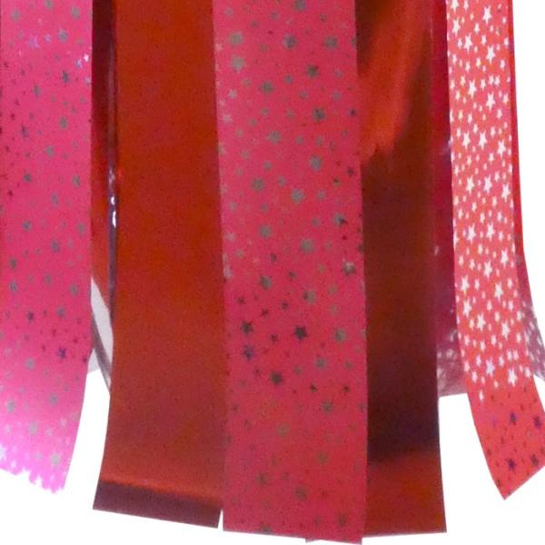不織布製の花飾り・メッキ吹流しの七夕飾り吹流しは、内側に銀色メッキ吹流しが付いた2重タイプで、ボリューム感があり風で揺れると銀色が涼やかです。【サイズ:全長約80cm・幅約15cm】【素材:不織布・PVC・竹・紙等】*屋内用