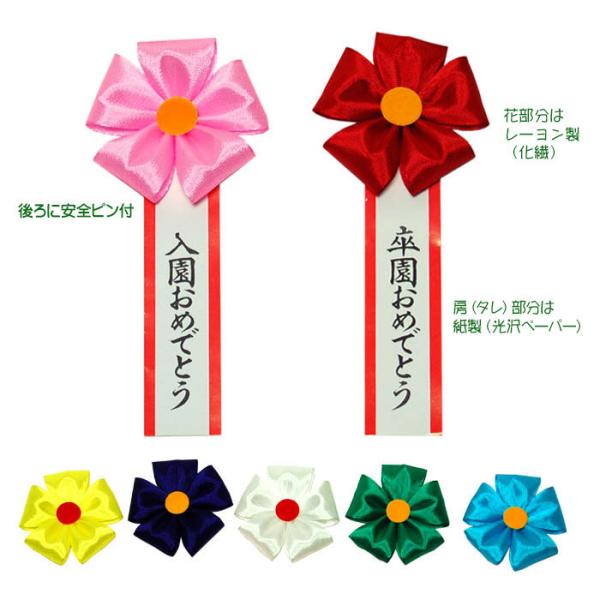 花リボン 卒園式や入園式用 卒園おめでとう 入園おめでとう印字済み胸章
