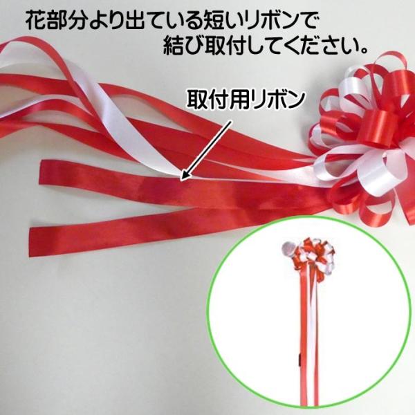 【サイズ:丸いリボンの部分が約15cm〜17cm・下に下がるリボンテープは約1m】【素材:サテン(アセテート)】型くずれしにくい素材となりましたマイク・スタンド部分に取付リボンを結んでご使用下さい。写真のマイクスタンド・マイクは売り物ではありません。