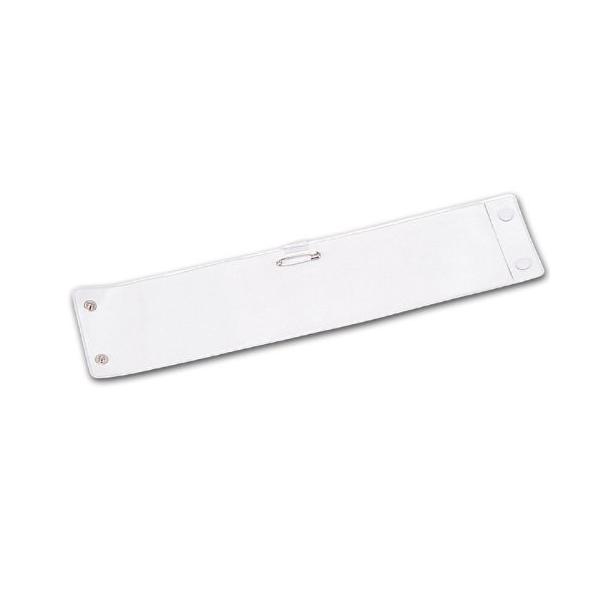 写真のように紙などを差し込んで、腕章として使用します。