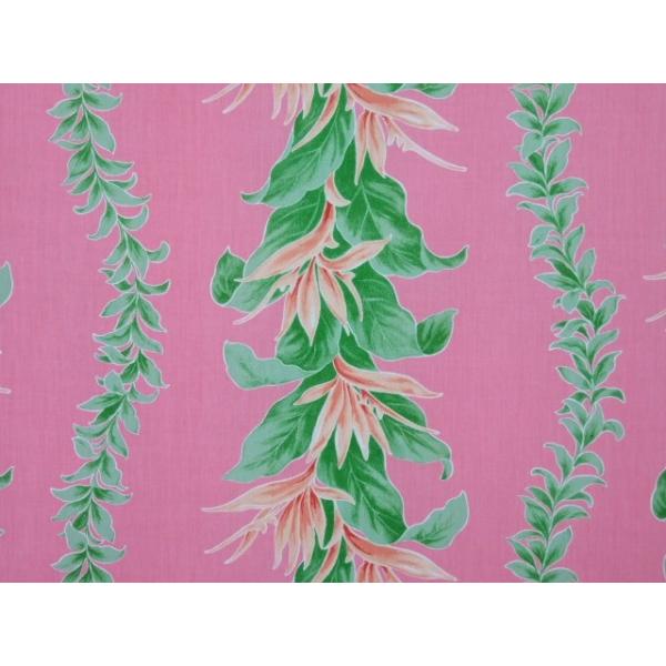 ハワイアンファブリック 綿ポリ ボーダー柄 バードオブパラダイス ピンク HFR688