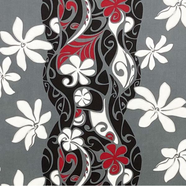 ハワイアンファブリック 綿ポリ ボーダー柄 グレー ティアレ HFN668
