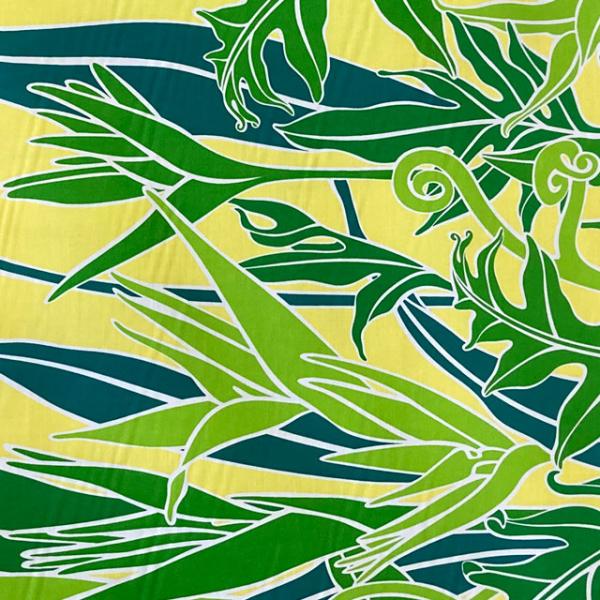 ハワイアンファブリック綿ポリ ボーダー柄/イエロー・グリーン/バードオブパラダイス/LW-24-943/HFR978