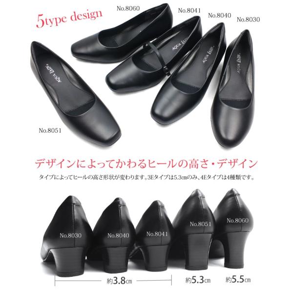 AQUA LADY アクアレディ パンプス レディース 本革 幅広 3E 4E 5E フォーマル ストラップ ブラック リクルート 仕事用 大きいサイズ 小さいサイズ 冠婚葬祭 爆買
