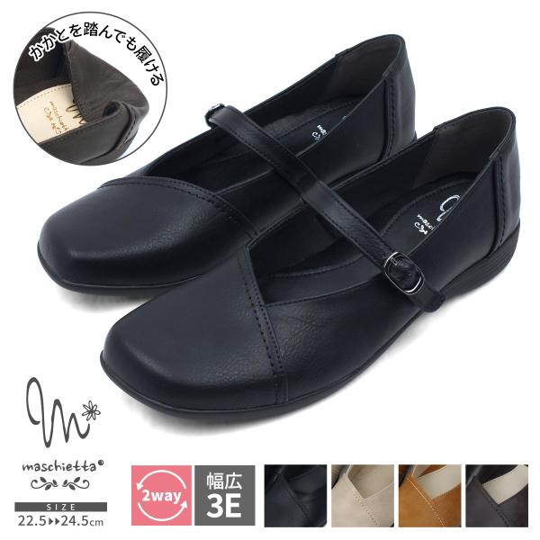 maschietta マスチェッタ パンプス カジュアル 幅広 ゆったり オブリークトゥ 軽量 甲ストラップ バブーシュ かかとが踏める 2way コンフォート レディース 爆買