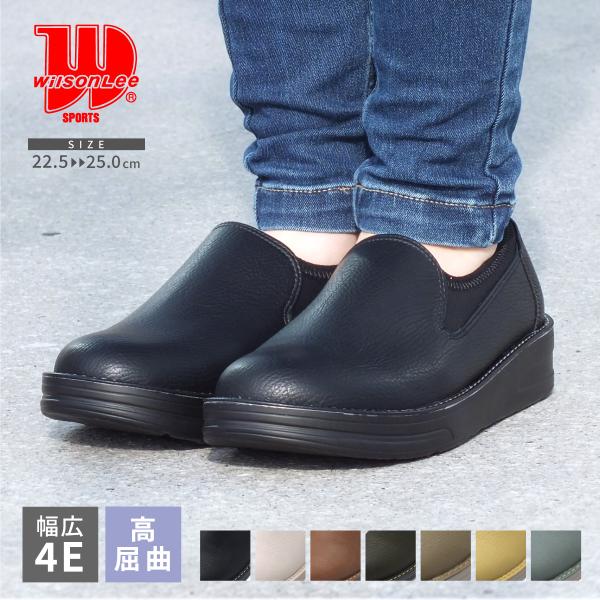 Wilson Lee SPORTS ウィルソンリースポーツ スリッポン コンフォート 4E 幅広設計 ストレッチ ローカット スニーカー カジュアルシューズ 厚底 レディース 爆買