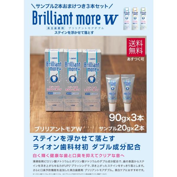 お買得 3本セット+試供品2本 ライオン ブリリアントモア w ダブル 90g 3本セット + サンプル 20g×2本 美白 ホワイトニング 歯磨き粉