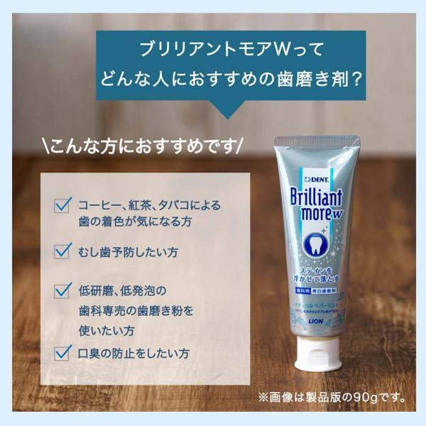 お買得 3本セット+試供品2本 ライオン ブリリアントモア w ダブル 90g 3本セット + サンプル 20g×2本 美白 ホワイトニング 歯磨き粉