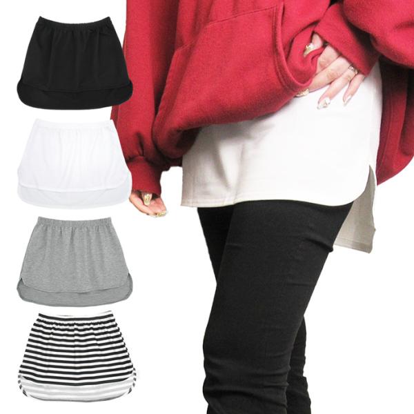 付け裾 レイヤードインナー 重ね着風 体型カバー Tシャツ裾 お尻隠し サイドスリット フェイクレイヤード オシャレ ウエストゴム S-3L 黒 白 za-001
