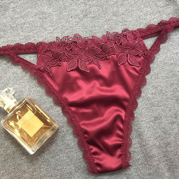【送料無料】 光沢サテンと繊細なレースのレディースTバック
