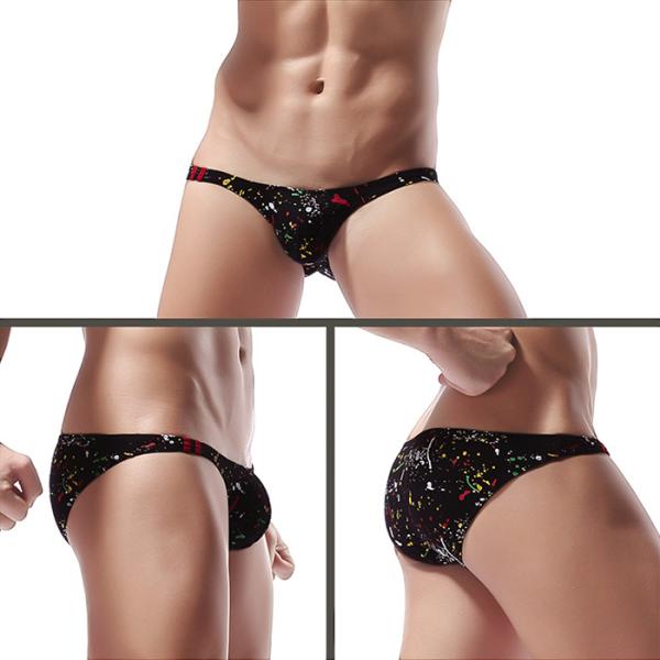 ビキニブリーフ メンズ ブリーフパンツ ローライズ 綿95% 立体縫製 フィット ストレッチ 透けにくい セクシー ペイント柄 大きいサイズ おしゃれ 黒 赤 青 e046