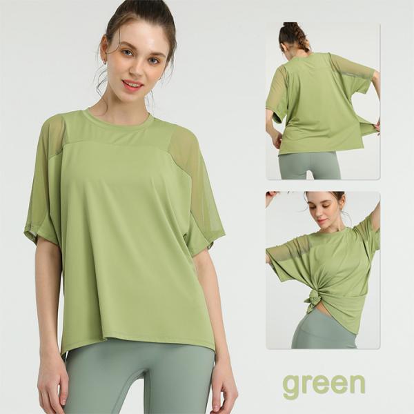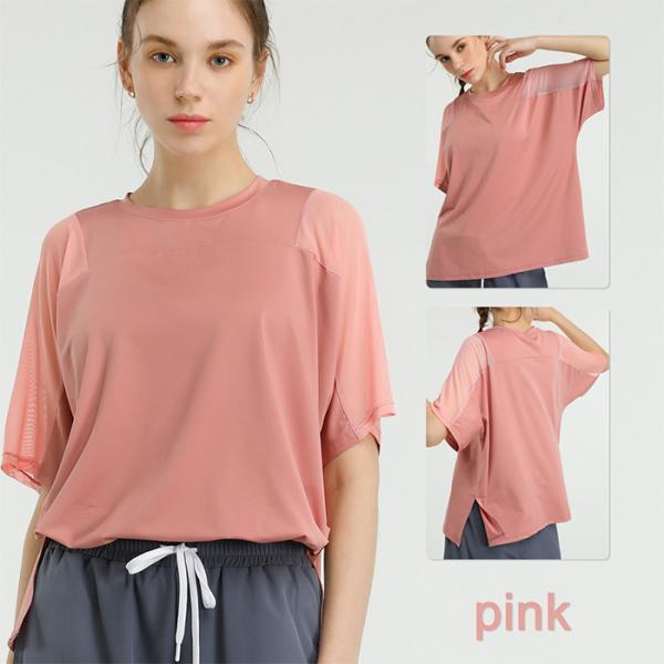 Karly Shop ヨガウェア トップス Tシャツ 半袖 スポーツ ホットヨガ フィットネス ジム ダンス メッシュ かわいい おしゃれ yd007