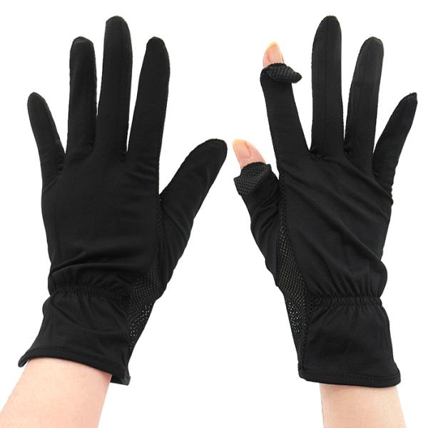 涼しい手袋 日焼け防止 UV対策 通気性 サラサラ生地 伸縮性 スマホ対応 指先開く 指先あり クール 自転車 ウォーキング ドライブ 買い物 スポーツ 黒 白 za-004