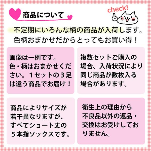 5本指ソックス 靴下 おまかせ3足セット ショート くるぶし丈 レディース ガールズ 蒸れ防止 夏 匂い対策 冷え取り 外反母趾 五本指 プレゼント かわいい l047