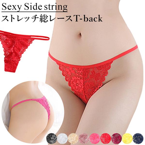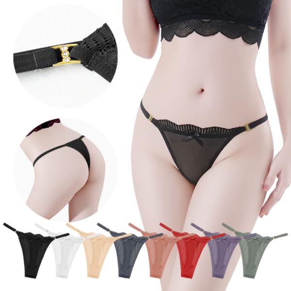 Tバック レディース キラキラ チャーム付き ラインストーン リボン付き 透ける レース メッシュ サイドストリング 腰ゴム セクシー おしゃれ 黒 白 赤 紫 rt-036