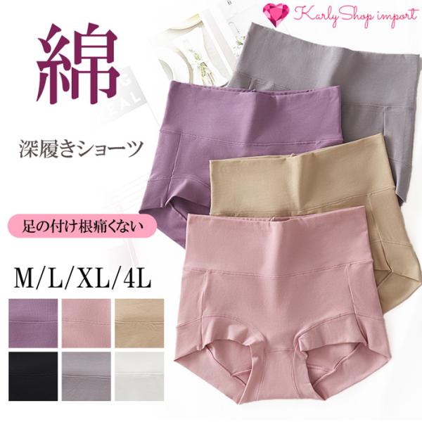 レディース ショーツ 深ばき すっぽり ハイウエスト 綿 大きいサイズ 厚め パンツ 下着 インナー フルバック 刺繍 おしゃれ 上品 温活 プレゼント 黒 赤 rs16
