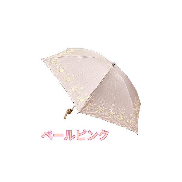 日本製 レディース日傘 【 パラソル※晴雨兼用ではありません 】 ミニ 折り畳み 三段 フラワー刺繍&縁スカラ刺繍 かわいい おしゃれ uvカット 母親 プレゼント