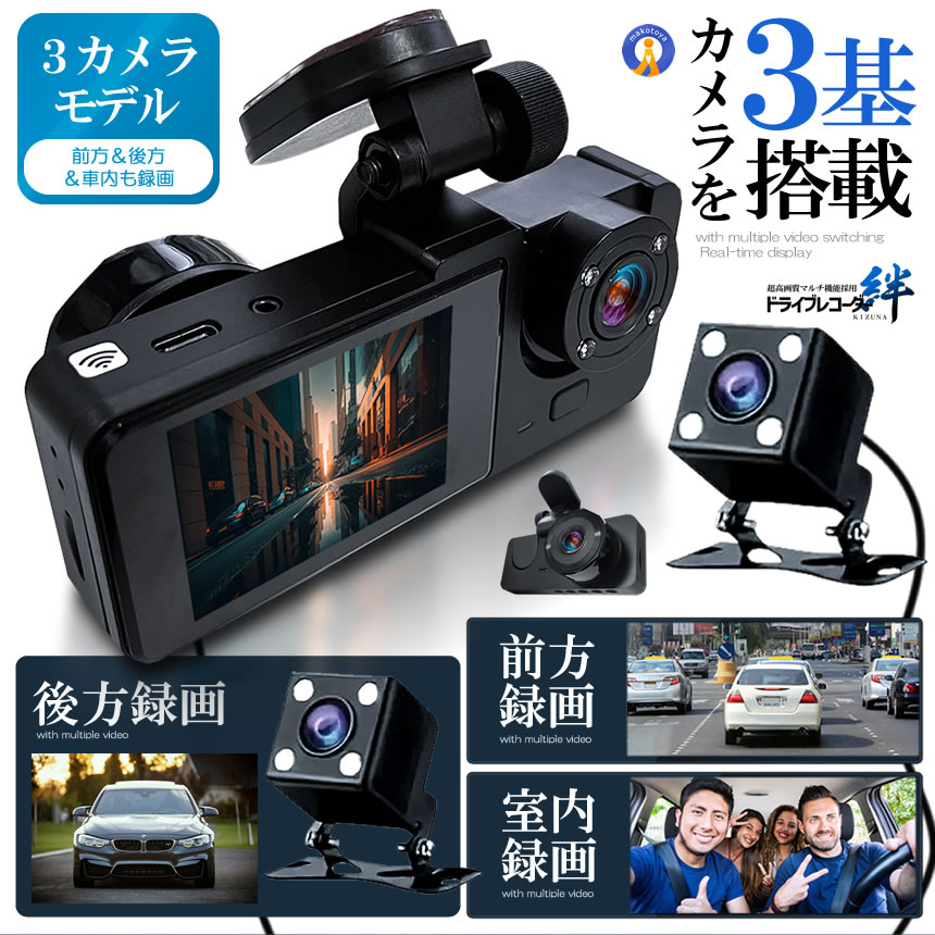 ●驚異の3カメラモデル!前方&後方&車内も録画