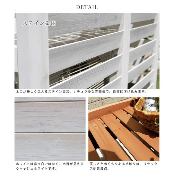 ※北海道・沖縄・離島は別途送料が必要となります。ナチュラルスタイルのお庭づくりに。どうしても生活感がにじみ出てしまうエアコン室外機は、おしゃれな室外機カバーで、目隠ししてしまいましょう。天然素材の室外機カバーなら、センスのいいお庭にイメージチェンジできるだけでなく、上にプランターやガーデニング用品が置けるので、デッドスペースだった空間を有効活用できます。広めの板幅で熱がこもりにくいだけでなく、板を上向きにすることで、周囲のグリーンに熱風が当たらないよう工夫しました。直射日光が当たる位置に室外機があるなら、室外機カバーで日陰を作ることで、節電効果も期待できます。※北海道・沖縄・離島は別途送料が必要となります。